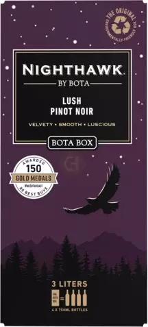 Nighthawk by Bota Box Lush Pinot Noir Red Wine, 3L (4 x750mL Glass Bottles), 13.5% ABV